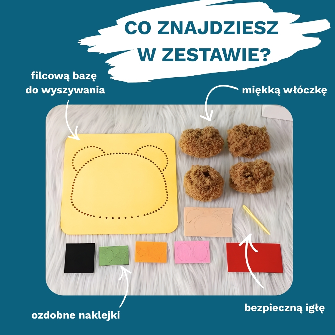 Misiowe Wyszywanki to najsłodszy sposób na pierwsze kroki w szyciu — dostępne w zestawie startowym (3 szt.) i rozszerzonym (6 szt.). Miękka włóczka, bezpieczna igła i urocze zwierzaki sprawiają, że nauka staje się czystą zabawą.