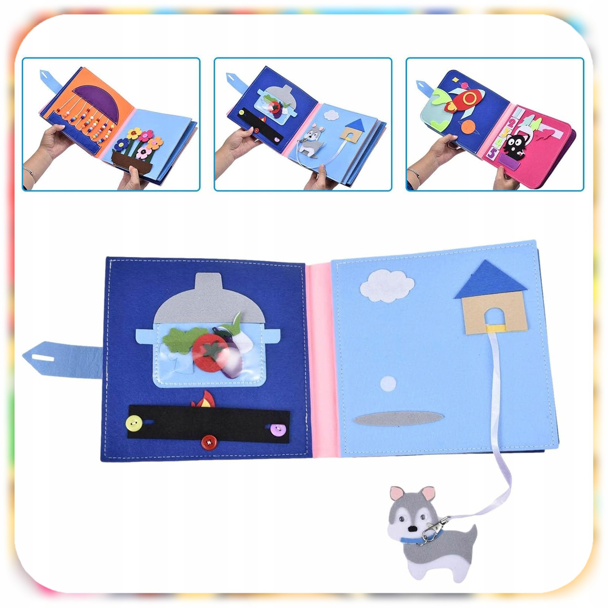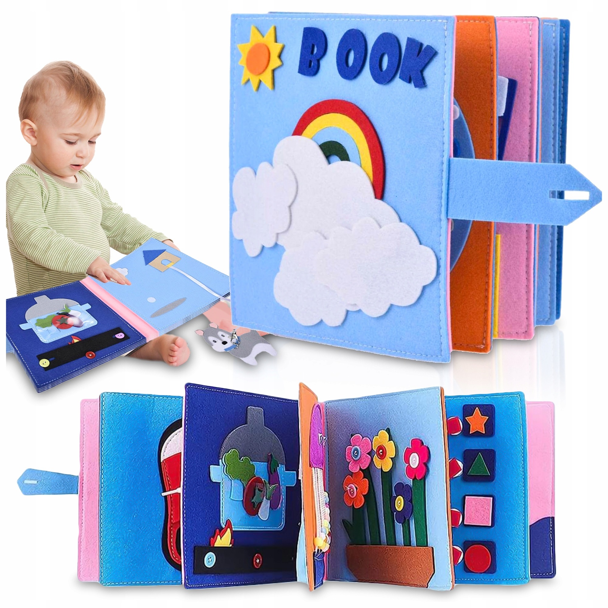 Kolorowe, filcowe strony są przyjemne w dotyku i zachęcają do eksploracji – to idealna zabawka do ćwiczenia cierpliwości, koncentracji i samodzielnego rozwiązywania zadań.